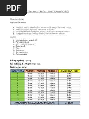 Kerja Pembersihan Rumput Ladang Kelapa Sawit Bulanan Pdf